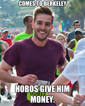 Well, my dad finally left me all by my lonesome in Berkeley, CA. I'm actually typing this on UC Berkeley's campus. I don't know where I am exactly. I just hopped on a bike and rolled down to this spot. The big question is...I'm not quite sure I can manage biking back up. The seat on this bike is super low and the brakes are very worn-down. Needless to say, I haven't been this scared on a bicycle since I was 7 years old.